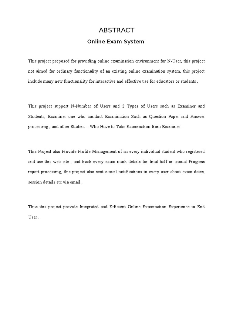 Abstract for online quiz system project. It is specially designed for instant results as the Internet continues to develop it becomes clear that the medium has different requirements. Project Training SystemTrain all skills necessary during the development cycle of a software project. It is very useful for an Institute to test its students continuously for their mutual development.